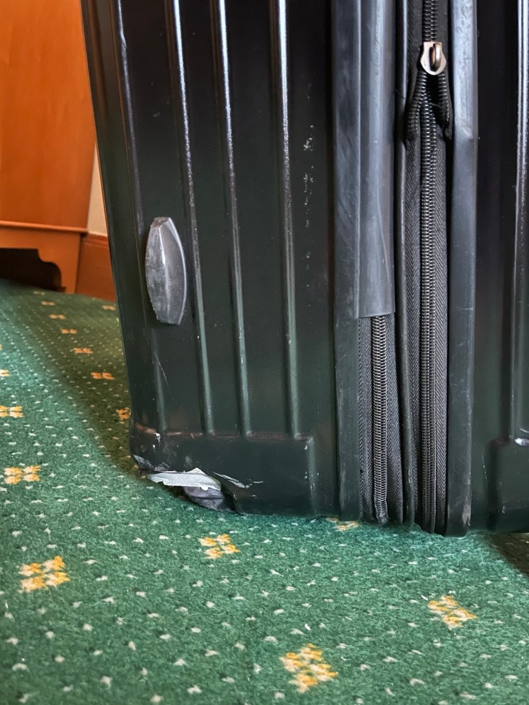 Und nach dem Essen kamen dann auch endlich unsere Koffer …. Aaaaber … um die Sache abzurunden kam einer unserer Koffer beschädigt an … da müssen wir wohl wieder organisieren um Ersatz zu bekommen. Es geht definitiv turbulent genug los.