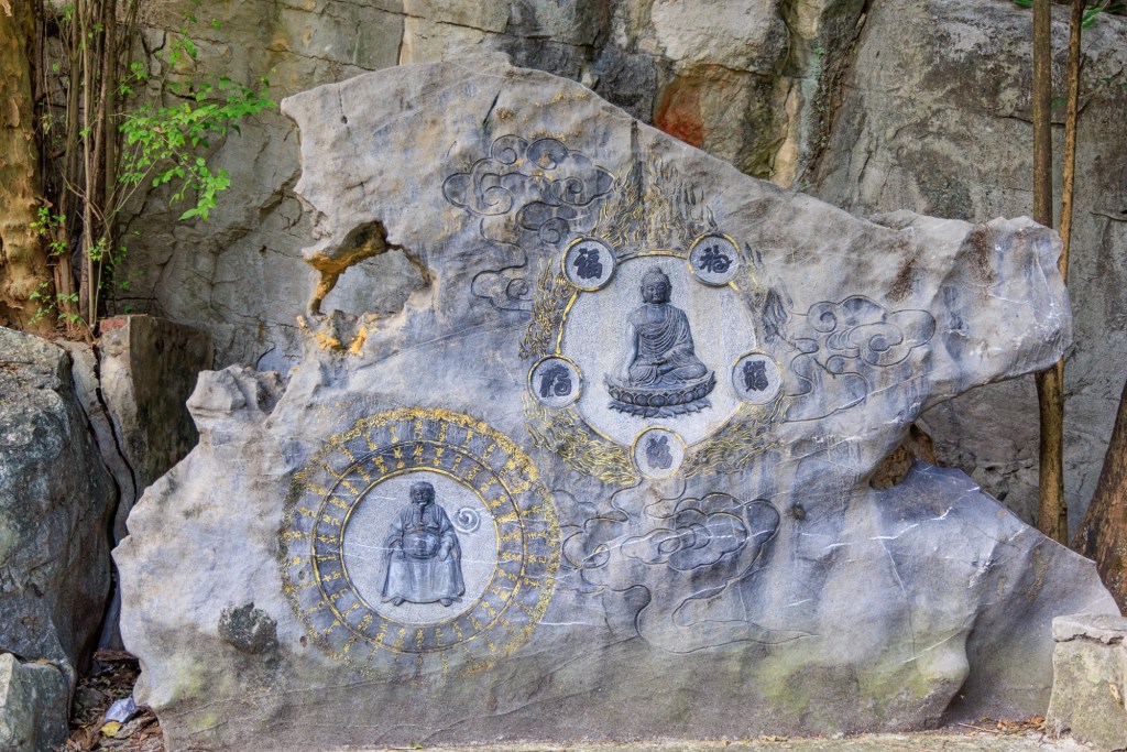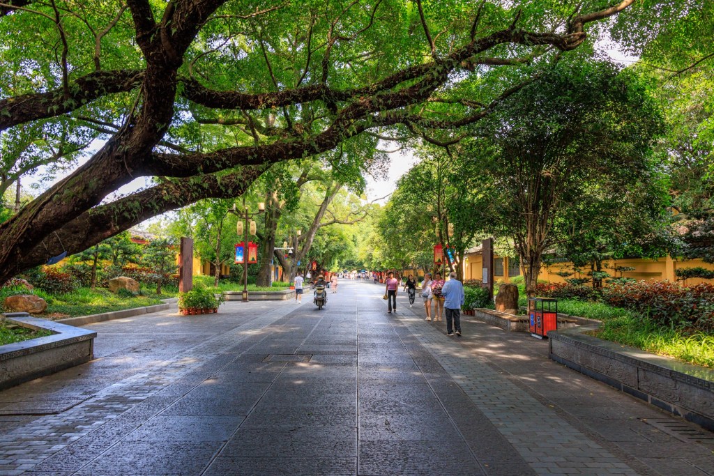 In der Mitte des Palastes steht ein Berg der Duxiu Feng (der Gipfel der einzigartigen Schönheit). Der Berg ist 216m hoch und der Kaiser hat damals bestimmt das kein Gebäude der Stadt jemals höher sein darf als der Duxiu Feng (Na ja … zu Kaisers Zeiten dürften Gebäude von der Höhe auch eher knapp gewesen sein …)