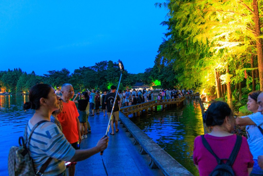 Die Pagoden sind natürlich ein Highlight Abends in Guilin … das sehen ausser uns natürlich noch 1,8 Millionen andere Menschen so: