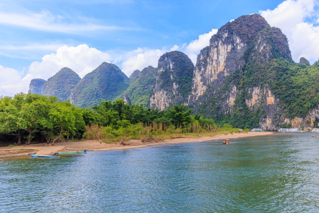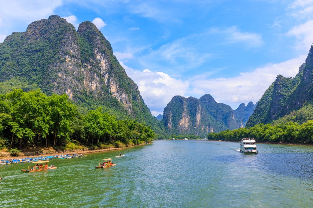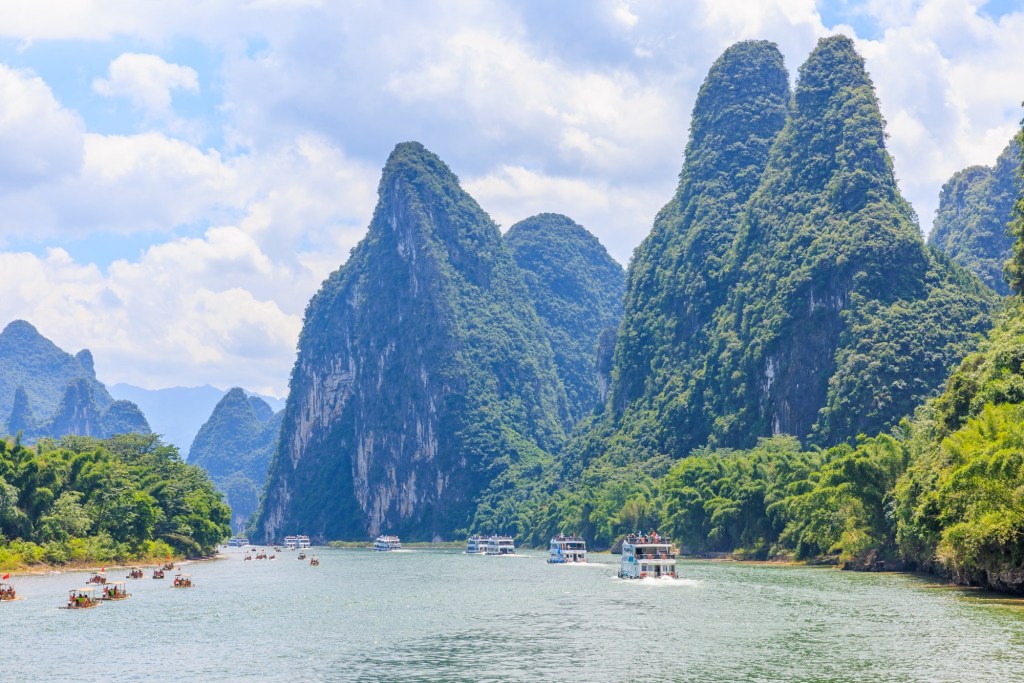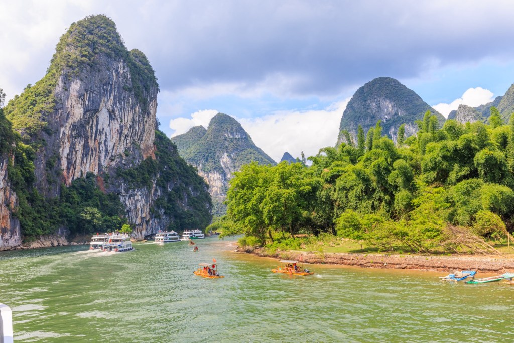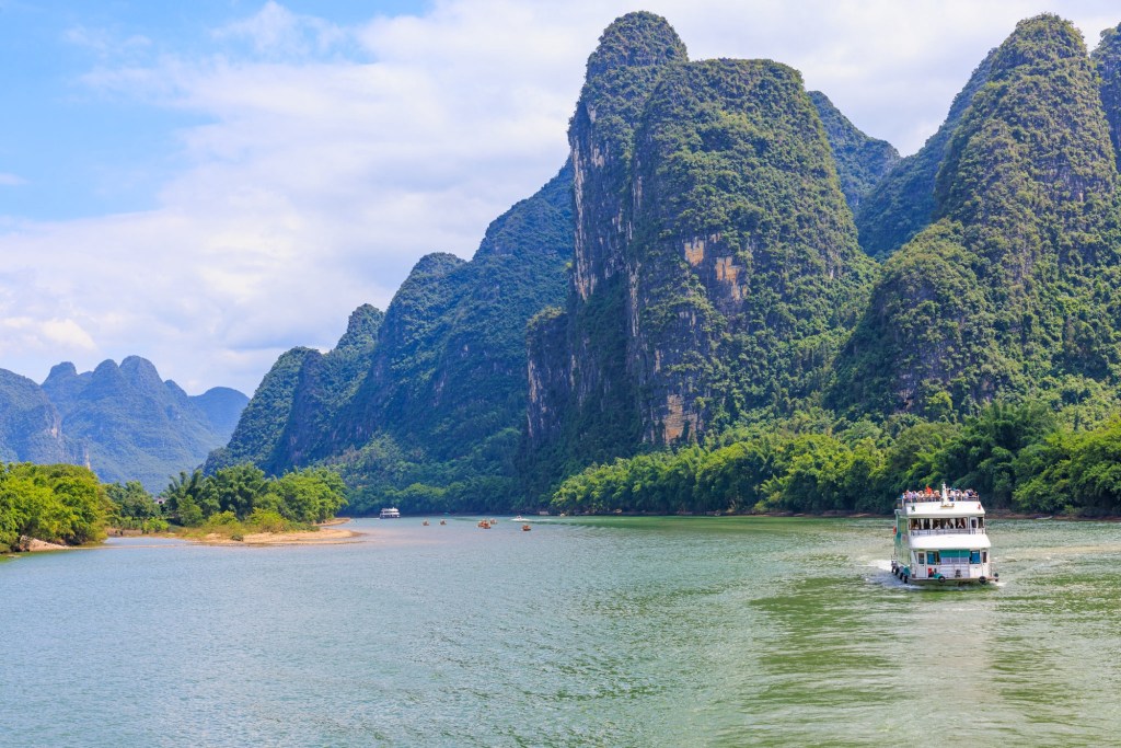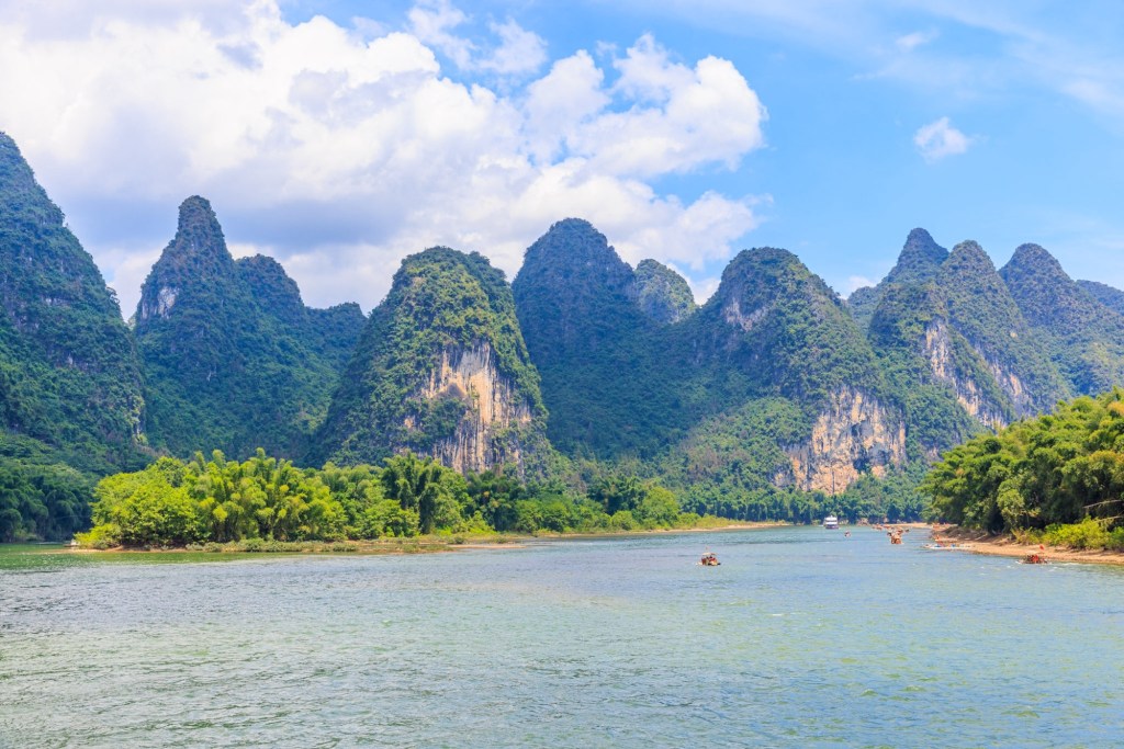 Wir werden 3,5 Stunden den Lijang Fluss entlang von Guilin nach Yangshuo fahren und unterwegs die berühmte Karst Landschaft bestaunen und fotografieren.