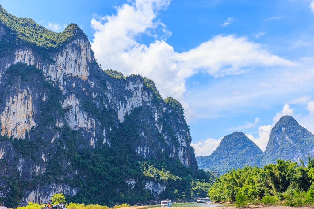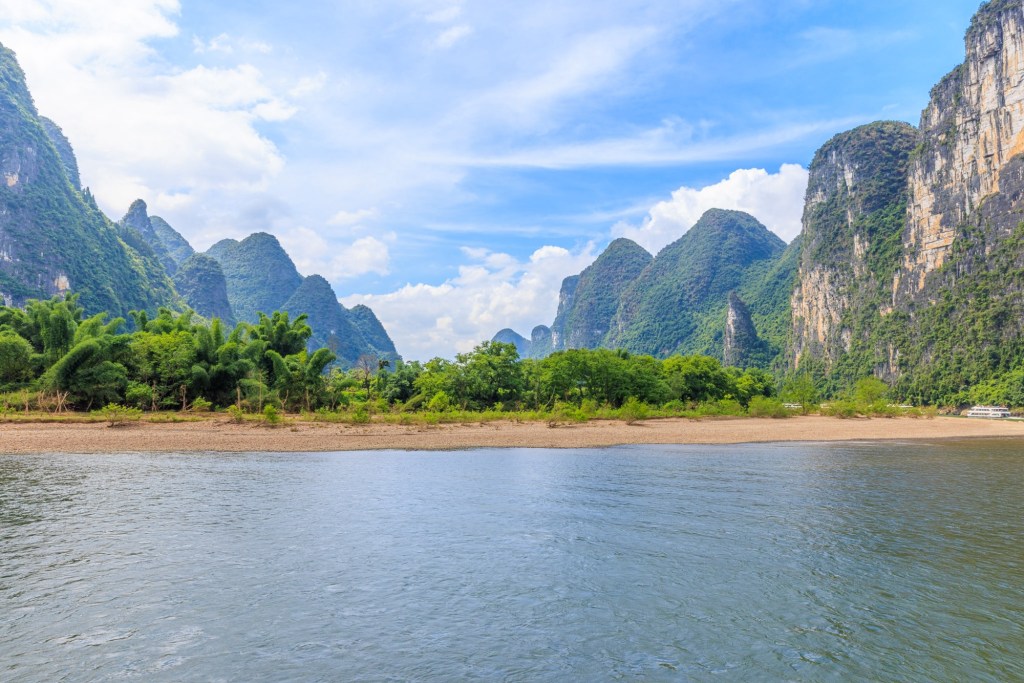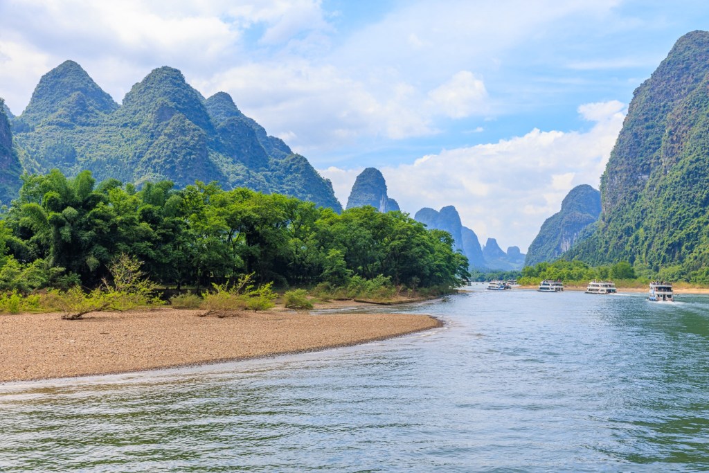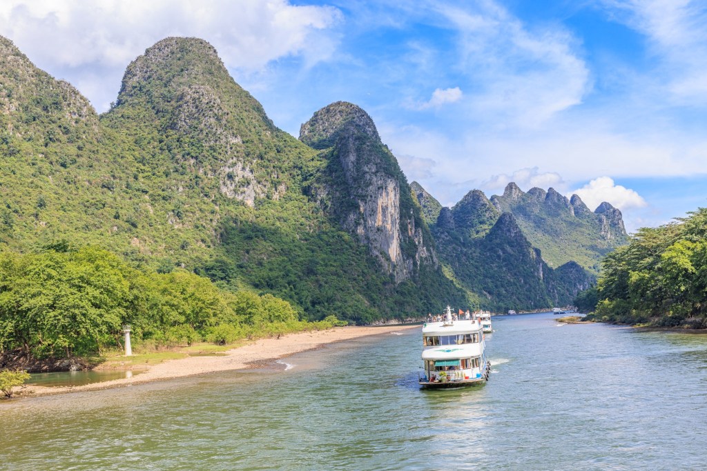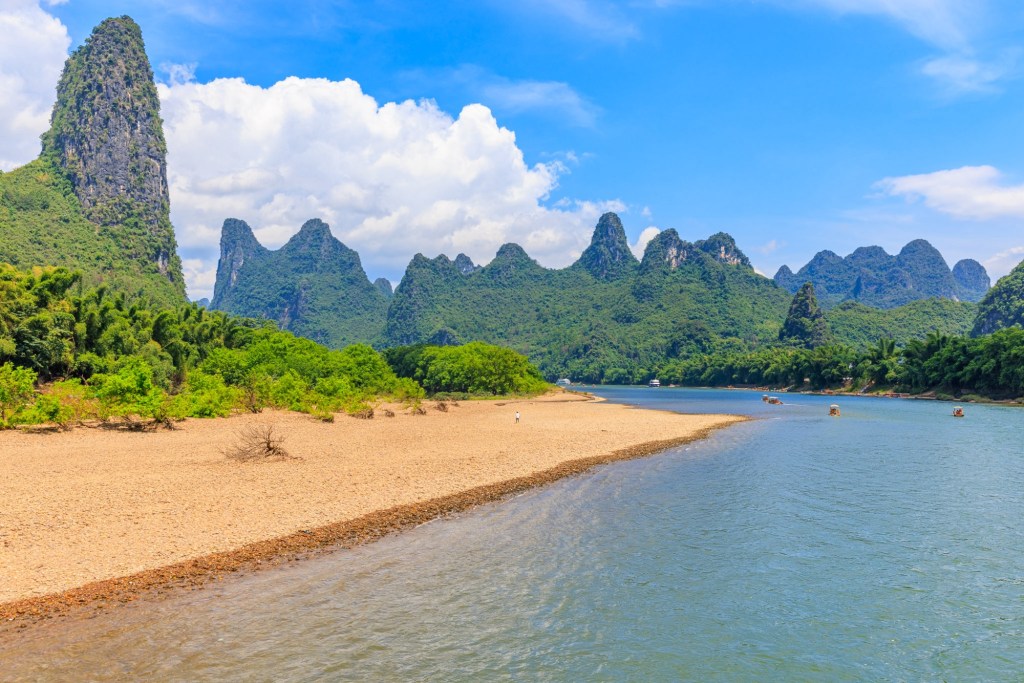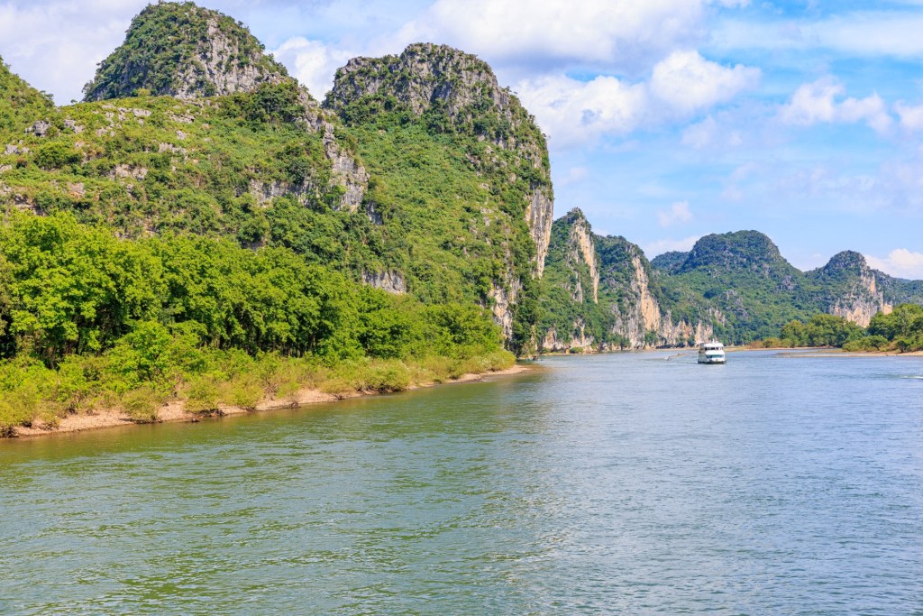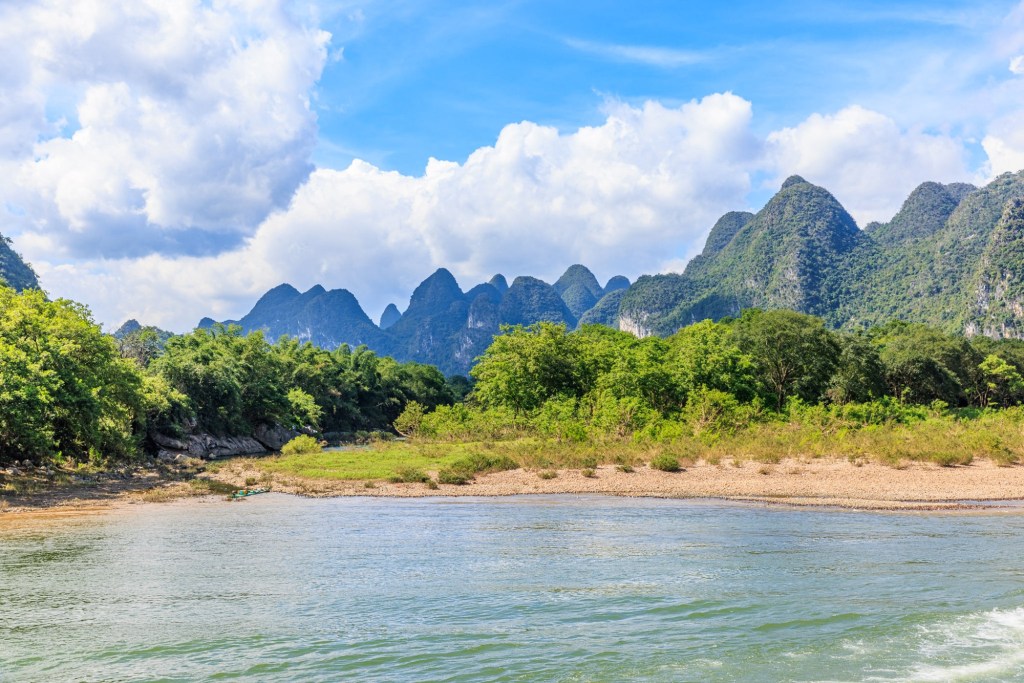 Wir werden 3,5 Stunden den Lijang Fluss entlang von Guilin nach Yangshuo fahren und unterwegs die berühmte Karst Landschaft bestaunen und fotografieren.