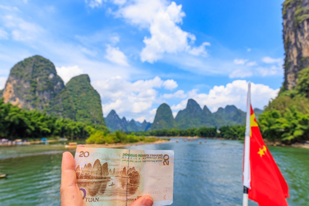 Die Li Flusslandschaft befindet sich auf dem 20 Yuan Schein und das muss natürlich auf jeder Reise tausendfach dokumentiert werden … Ja, auch von mir 😁