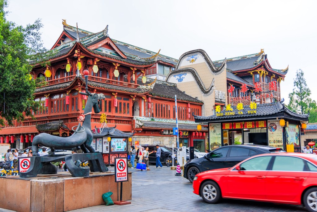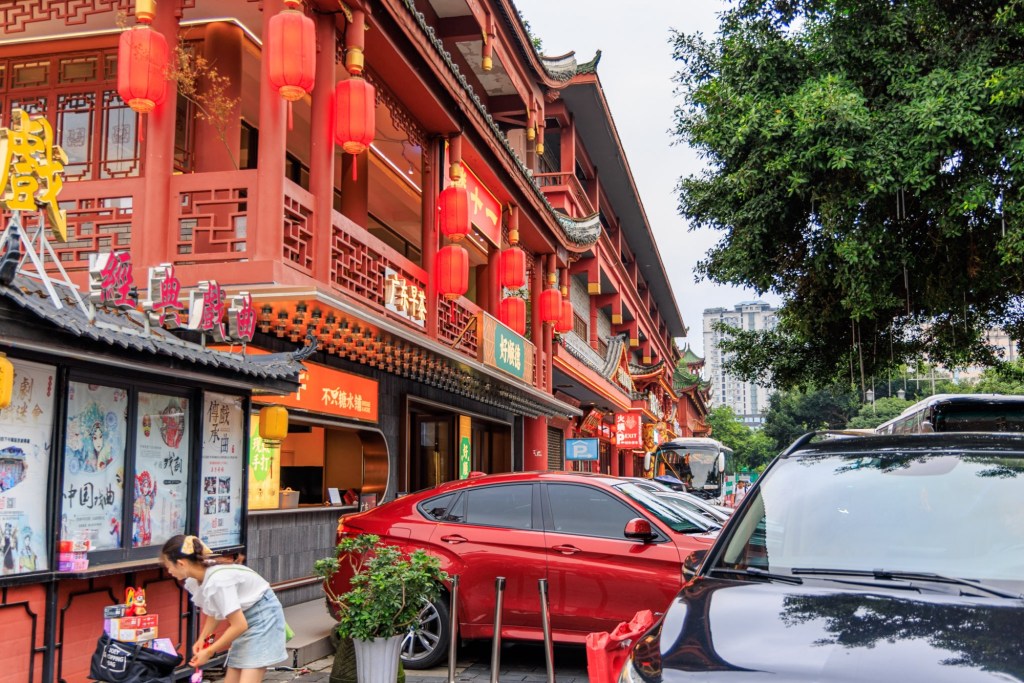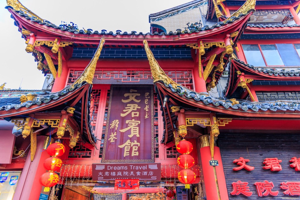 Das erste Highlight in Chengdu ist unsere Unterkunft, und auch schon die Strasse in der wir wohnen.