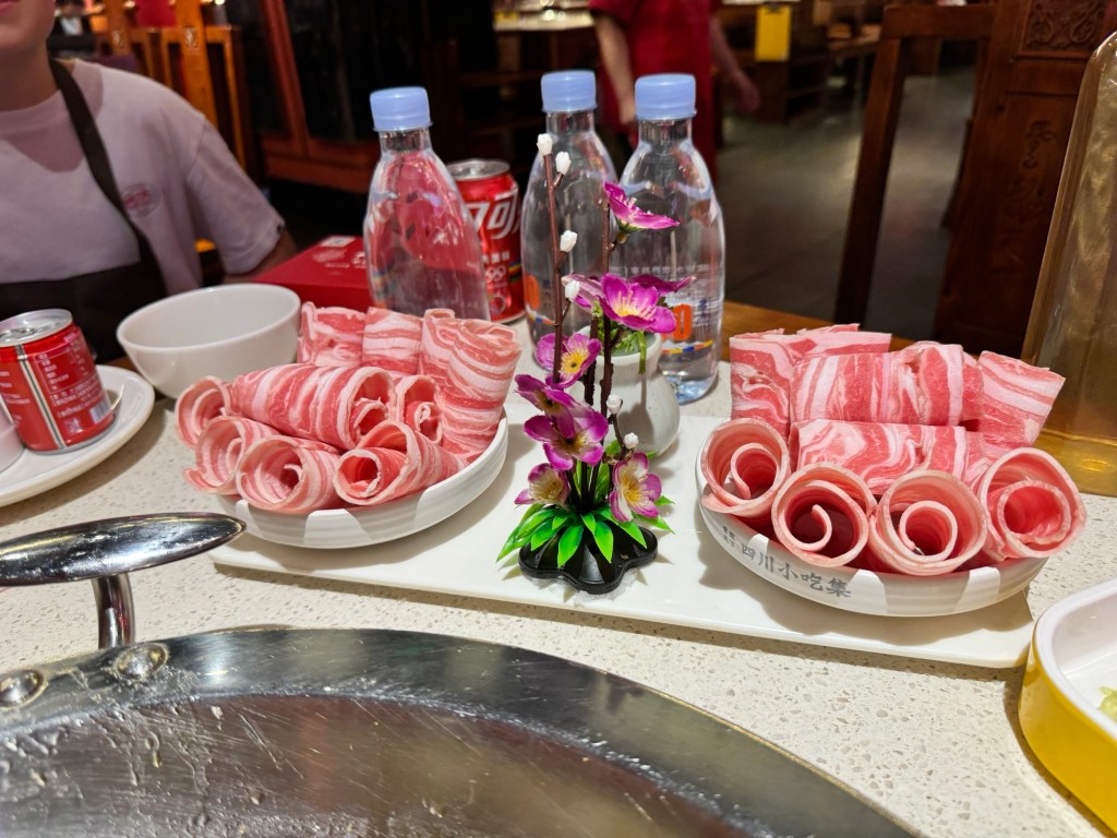 Wir haben einen Hotpot „EXTRASCHARF“ bestellt …. Entweder haben sie das ganze etwas milder gemacht weil Europäer am Tisch saßen oder ich hatte zu hohe Erwartungen an Sichuan … es war scharf, ja … aber nicht das Napalm das ich jetzt erwartet hätte …. Auf jeden Fall wieder sehr lecker !