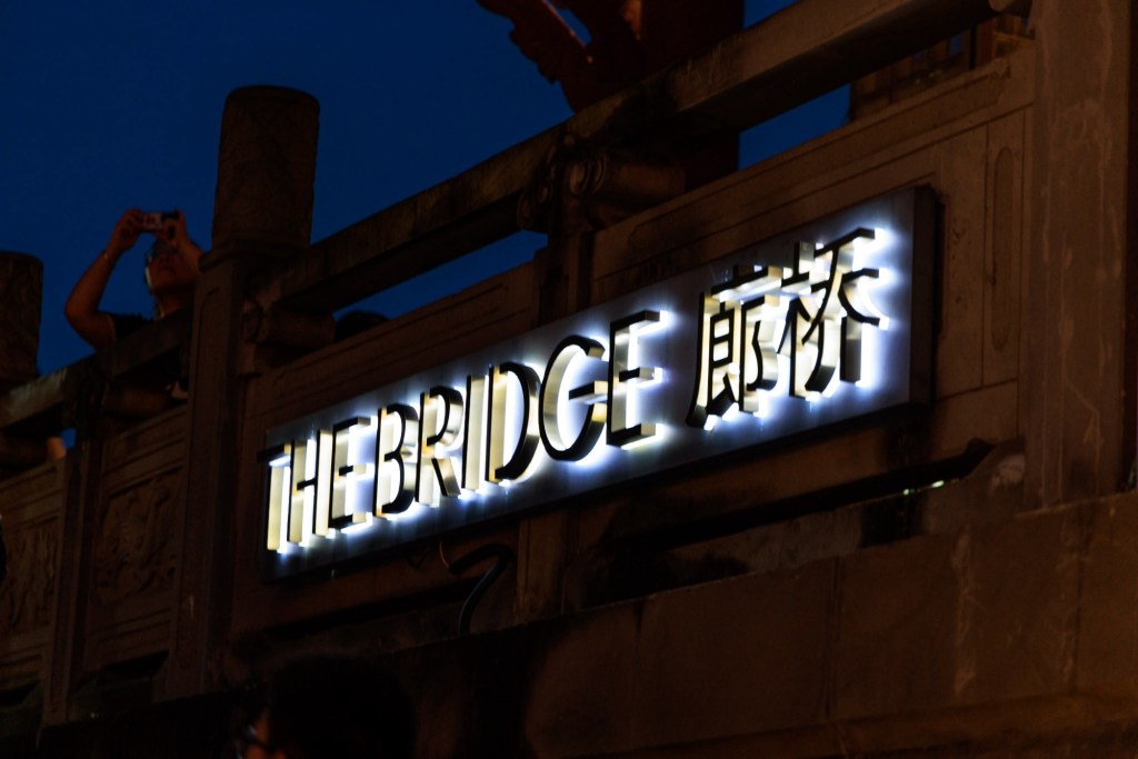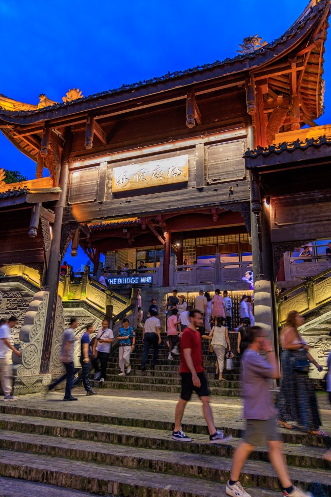 Nach dem Essen haben wir noch einen kleinen Spaziergang gemacht zu einem weiteren „Wahrzeichen“ von Chengdu, der Dongmen Brücke … ich hatte schon Angst das es hier auch so überlaufen sein würde wie in der Hongya Dong in Chongqing aber hier war das vollkommen Ok mit dem Menschenmengen … die Dongmen Brücke sah natürlich Hammer gut aus Abends !