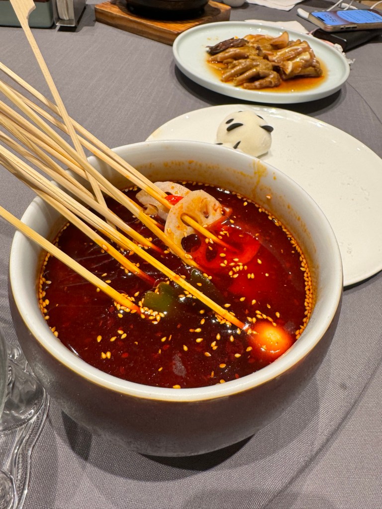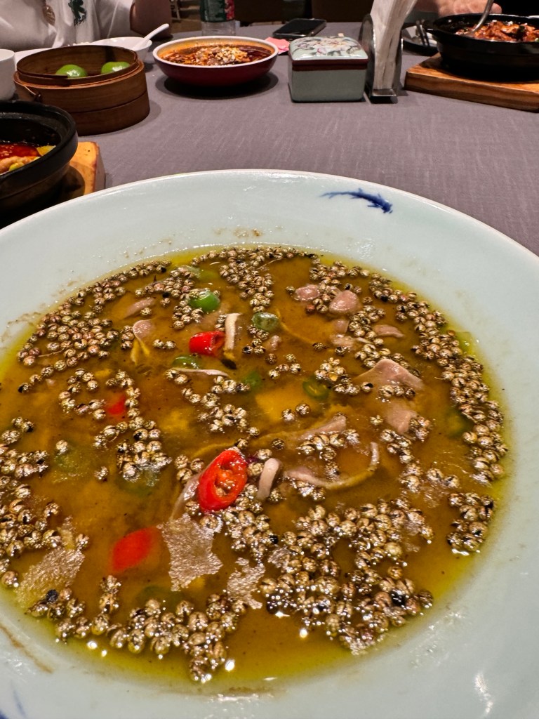 Wir waren in einem extrem schicken Restaurant in der Nähe von Taiko Li und es gab sehr spezielle Köstlichkeiten aus der Sichuan Küche.