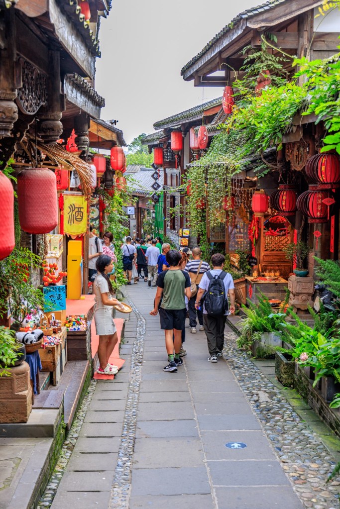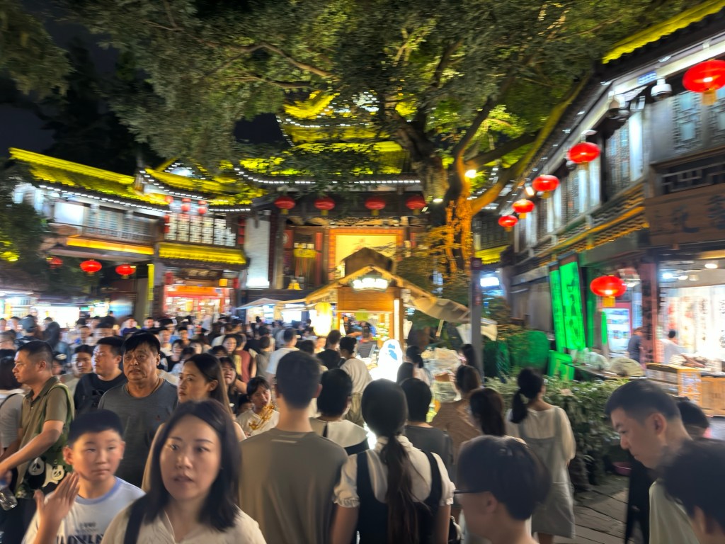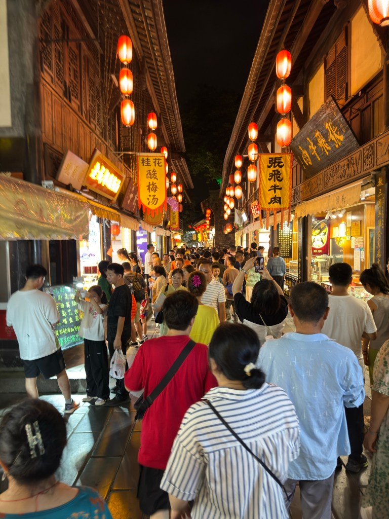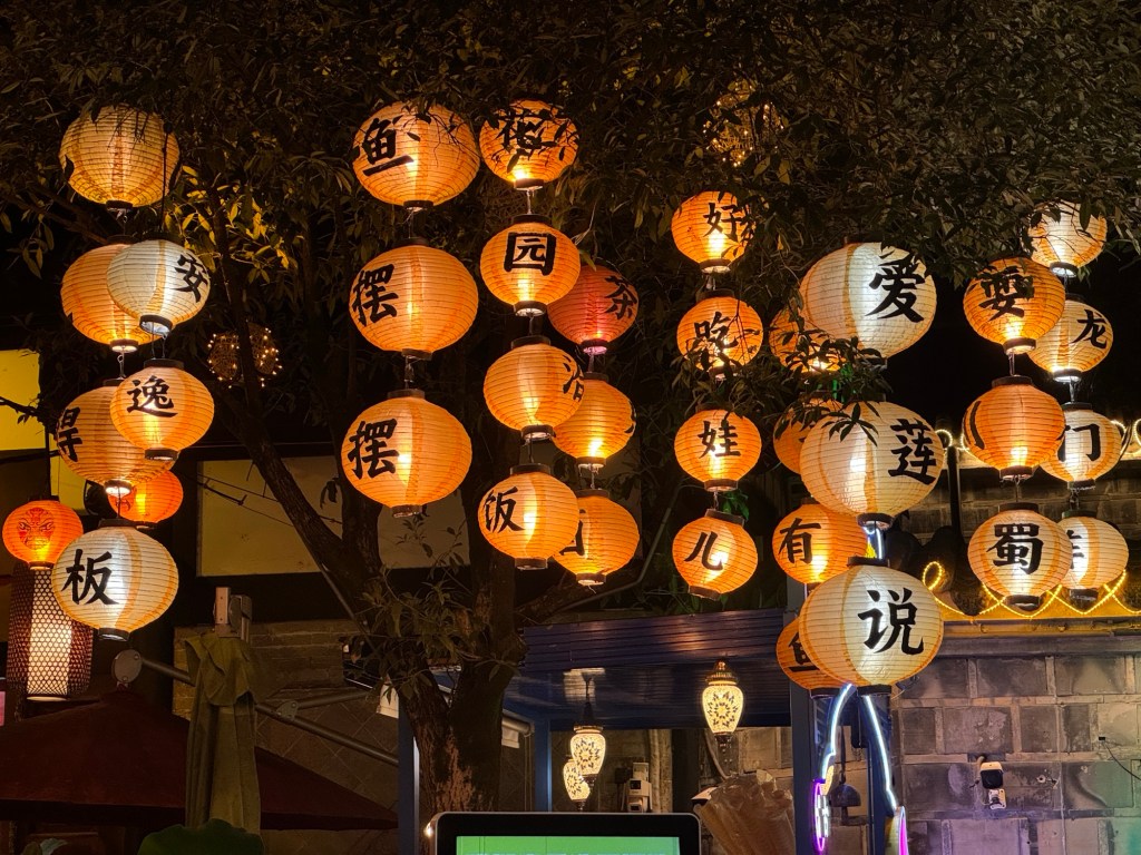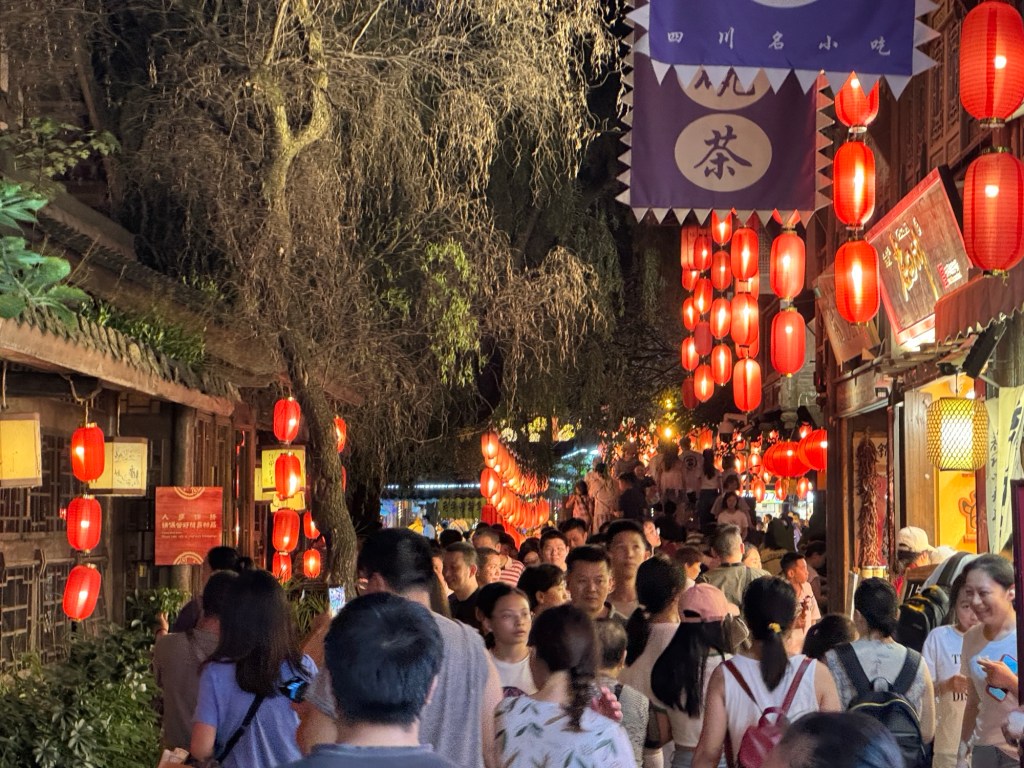 Danach sind wir dann noch einmal zur Jinli Ancient Street gefahren … die hatte ich zwar schon besucht, aber nur tagsüber. Abends hat das ganze bei Beleuchtung noch einmal ein ganz anderes Flair … und etwas mehr Besucher, aber verglichen mit Hongya Dong in Chongqing war das NICHTS !