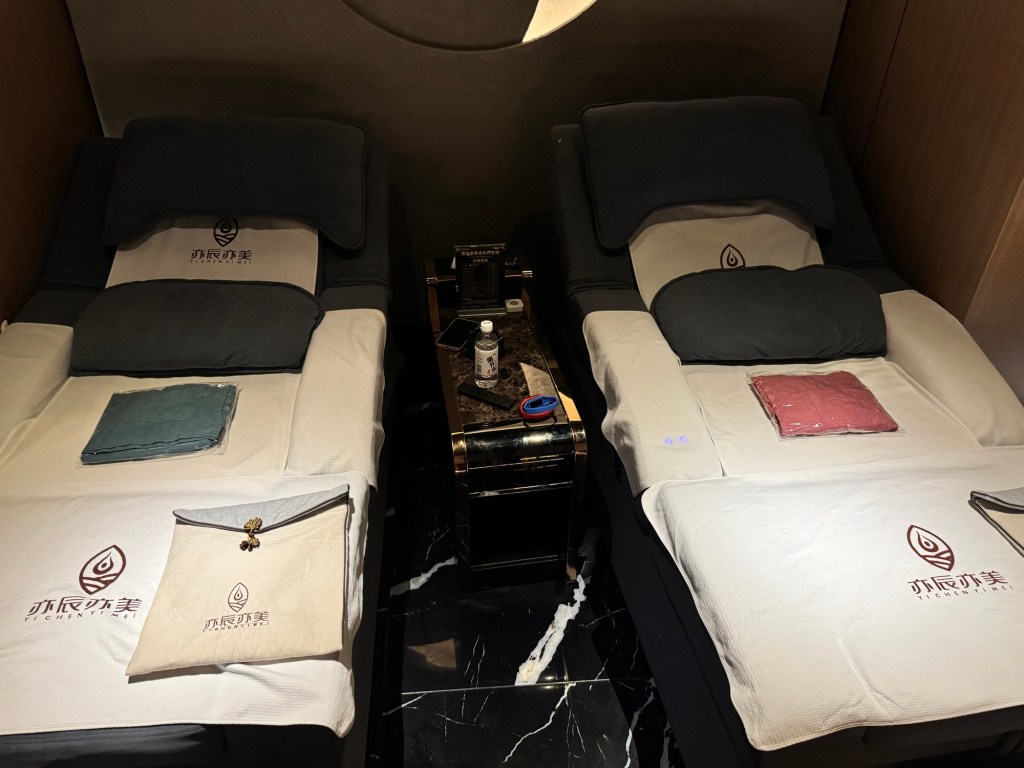 Ok … spontan ergab sich das der Abend wohl noch nicht ganz zuende ist, einen Programmpunkt den ich IMMER mache wenn ich in China bin, und der nach so viel laufen auch echt passend ist: Fussmassage !