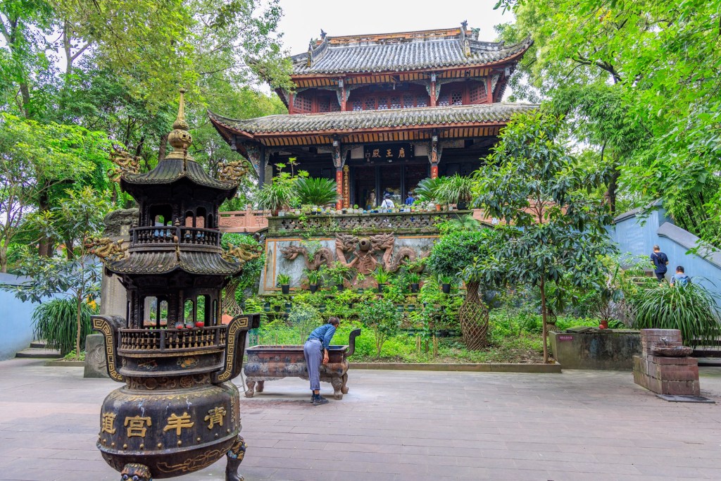 Qingyang ist einer der bedeutendsten Taoisten Tempel Chengdus und wurde während der Tang Dynastie errichtet …. Alles was man heute von der Anlage sieht aber Restaurationen und Neubauten aus der Qing Dynastie.